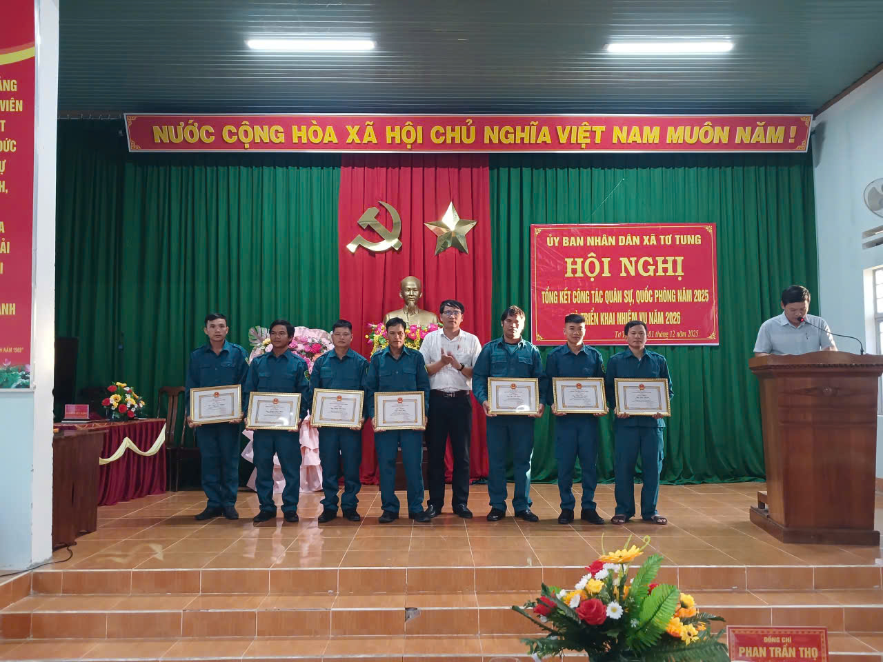 Ngày 01/12/2025. Tại Hội trường UBND xã Tơ Tung (Thôn Hbang), Ủy ban nhân dân xã tổ chức Hội nghị tổng kết công tác quân sự, quốc phòng năm 2025, Triển khai phương hướng, nhiệm vụ năm 2026.